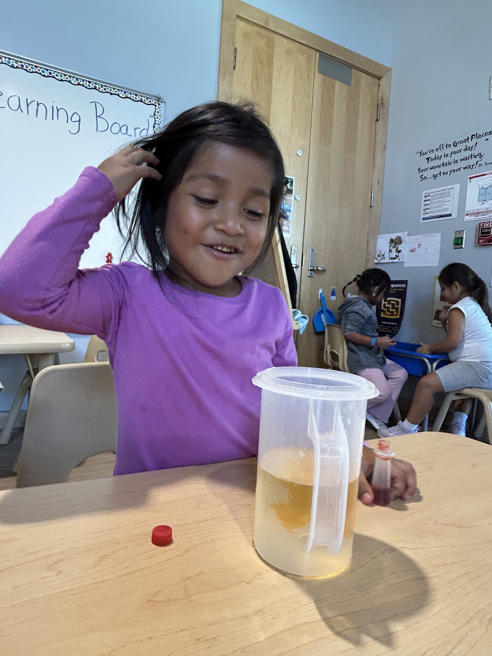 One of the highlights of the week was a fun and interactive experiment focused on water conservation. Students learned how trash and harmful chemicals can affect water sources and explored simple ways to help keep water clean. With curiosity and excitement, they observed changes, asked thoughtful questions, and began to connect their actions to real-world impact.